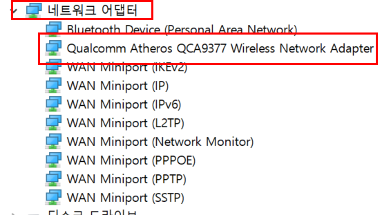 저의 경우에 노트북을 사용중이라 Wireless 드라이버가 설치되어있네요!